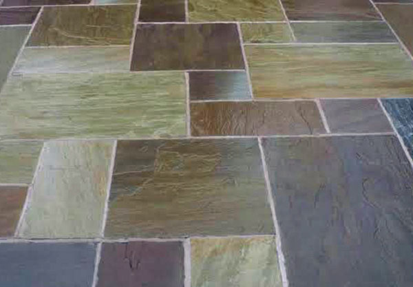 Our tumbled sandstone pavings undergo a process where it is gently tumbled in a rotating drum tumbling machine supported with round pebbles and water. This method gently knocks back any sharp or rough edges to the stone on the edges and riven surface, giving it a more characterful antique look like the rolling stone falling of mountains and coming across rivers.