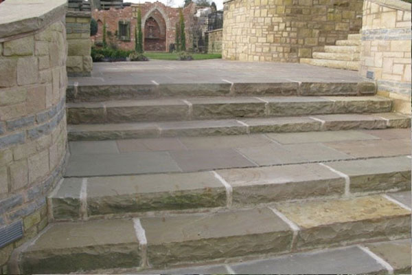 Our Natural Rock Faced Steps are handcrafted and finished to perfection by our skilled craftsmen. Natural stone steps enhance the elegance of any patio or stairway and can also be used for garden benches. These steps come with a natural surface, a calibrated bottom and rock-faced or machine cut edges.